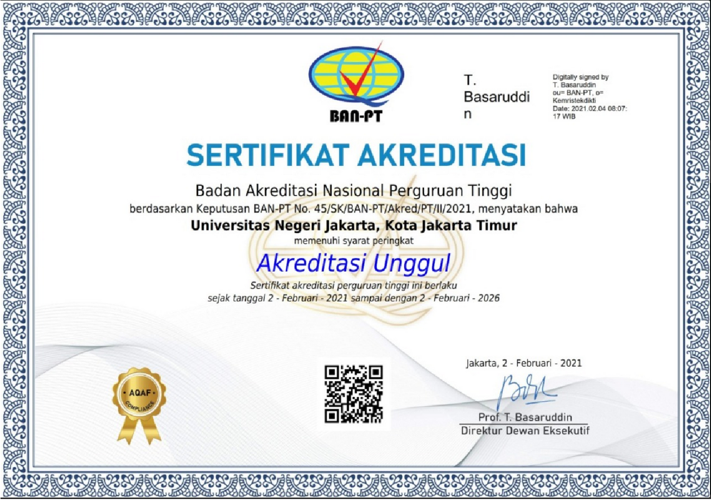 Accreditation of Universitas Negeri Jakarta : Excellent